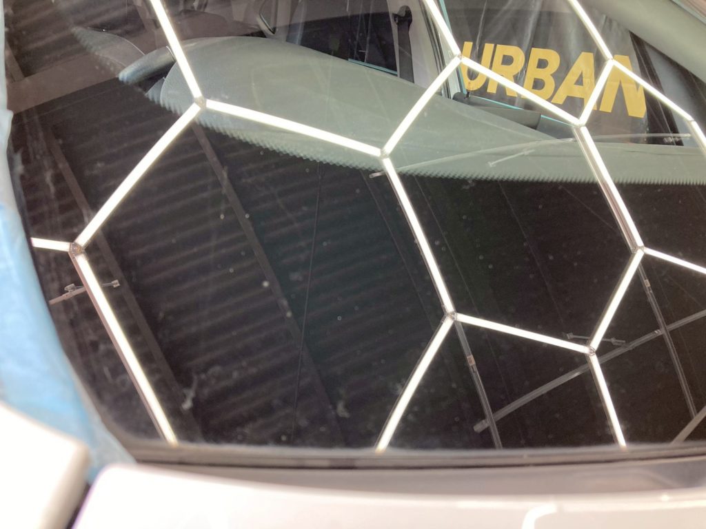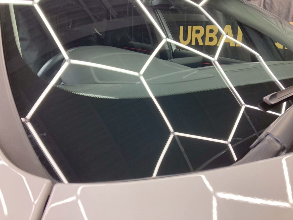 オプションのウィンドー撥水は、施工前にはガラス表面の状態を確認し、専用の研磨で油膜・雨ジミを丁寧に除去。